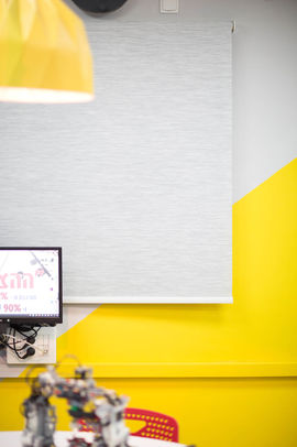בחירת הצבעים בפרויקט הינה של צבעי יסוד , המזכירים את אבני הלגו המשתמשים לבניית הרובוטים: אדום, צהוב וכחול, צבעים אלו משרים אווירה של פעילות ויצירתיות.